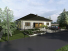 Parter: salon z aneksem kuchennym, trzy sypialnie, łazienka, kotłownia, wc, garaż w bryle budynku. Standard wykończenia: ...